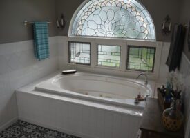 Inside, you’ll find modern touches throughout, including renovated bathrooms and a spacious kitchen. The master suite features a luxurious jacuzzi tub, and the home includes two fireplaces—a cozy wood-burning fireplace and a convenient gas option.
