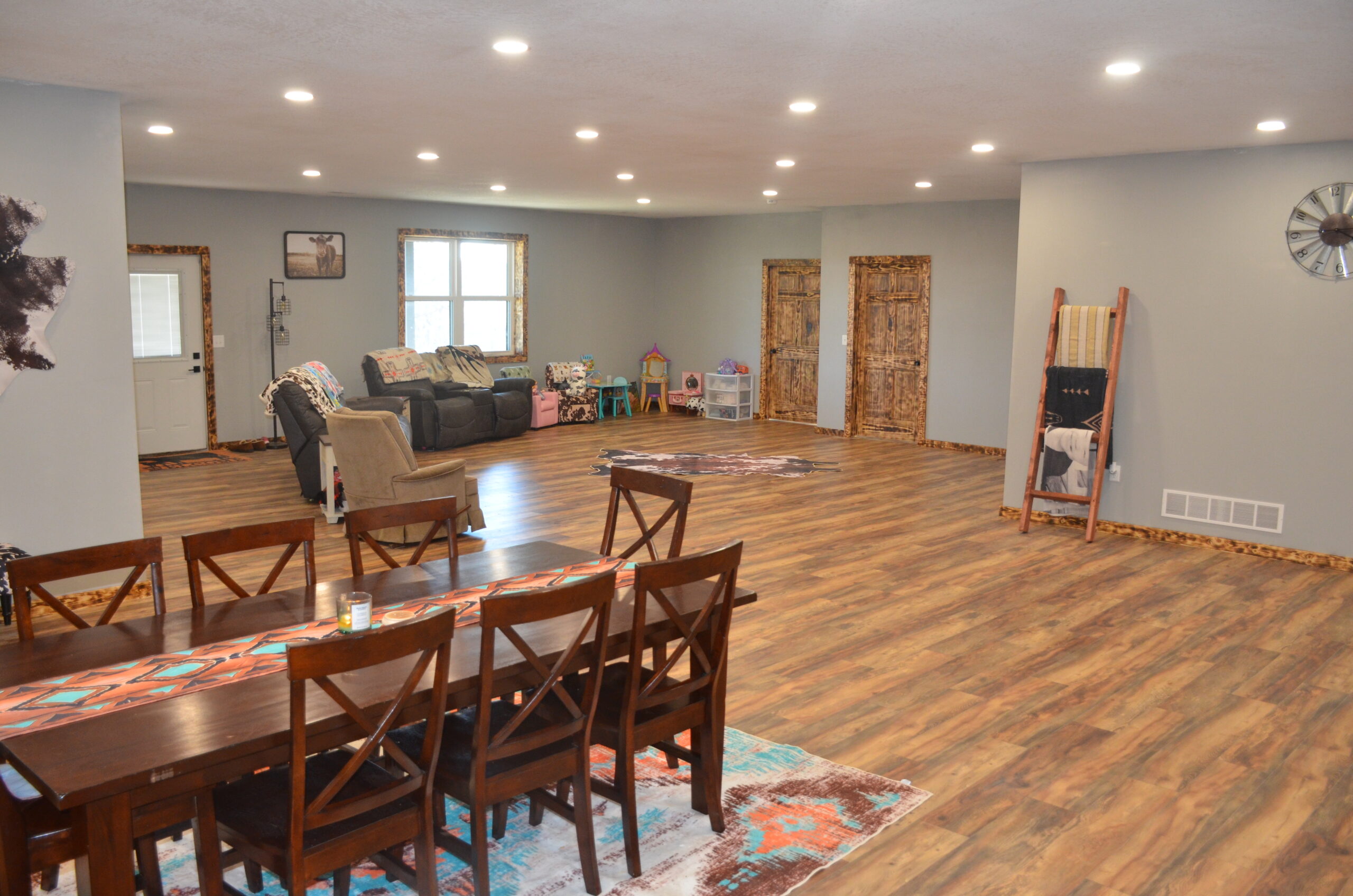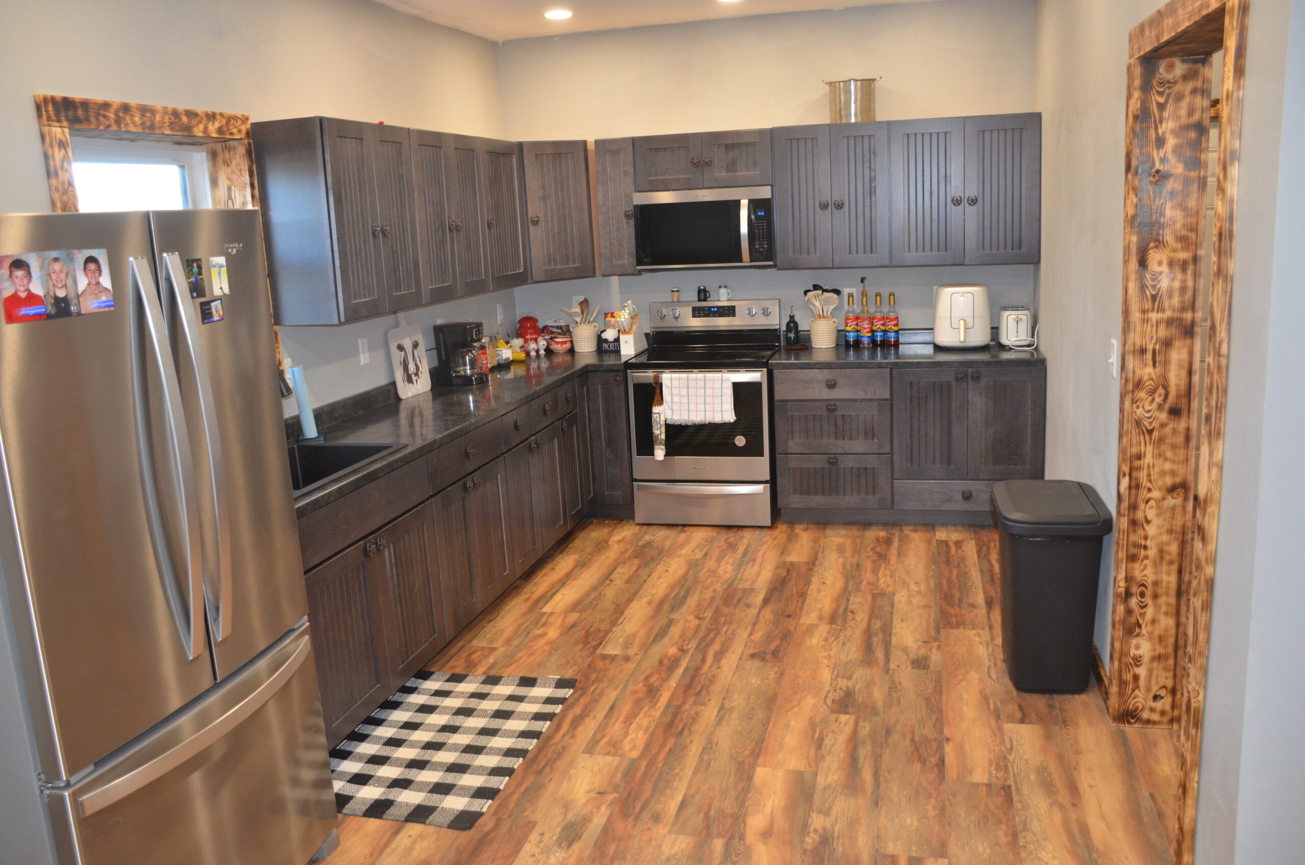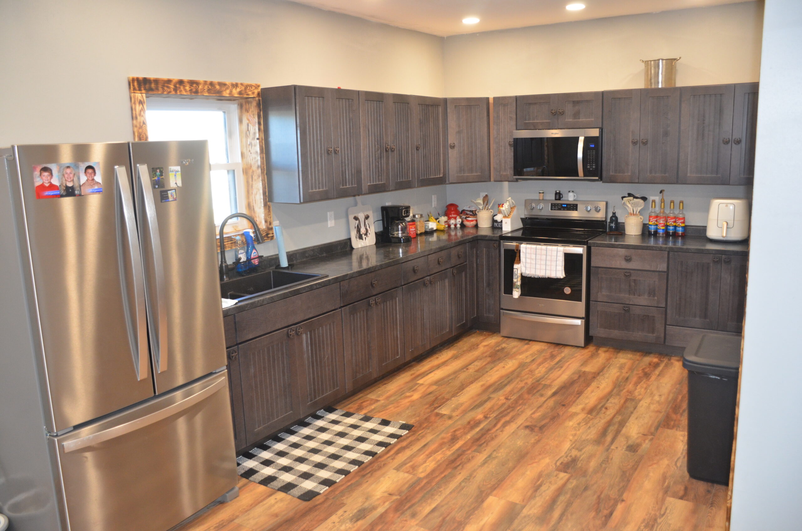 The open floor plan seamlessly connects the kitchen, dining, and living areas—perfect for entertaining or everyday living. The kitchen features stainless steel appliances (which stay with the home) and ample cabinet space. A mudroom just off the side entrance adds convenience, while the welcoming front porch provides the perfect spot to relax and take in the peaceful surroundings.